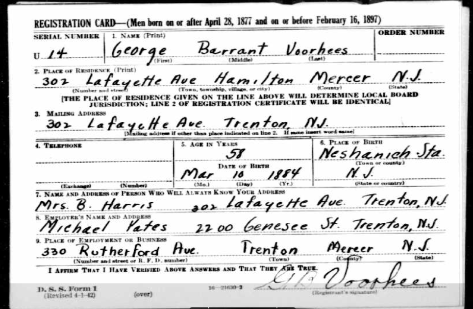 Albert, Couart, Garret and Kendrick Voorhess are buried in Adelphia Cemetary.  John G. (wounded in Fredericksburg), Monroe and Jacob are buried in Harmony Cemetary.  My grandparents, George and Ethel along with my aunt Trena are also buried there.  John Voorhees (Revolutionary war) is buried in Tenant Cemetary.